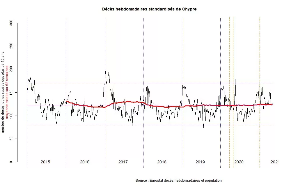 Al igual que en Francia, donde el número de defunciones inscritas en el registro civil es mayor los lunes y los martes y muy bajo los domingos, en Chipre el fin del encierro no está probablemente relacionado con un exceso de mortalidad, sino con el descubrimiento tardío de las defunciones no registradas.
