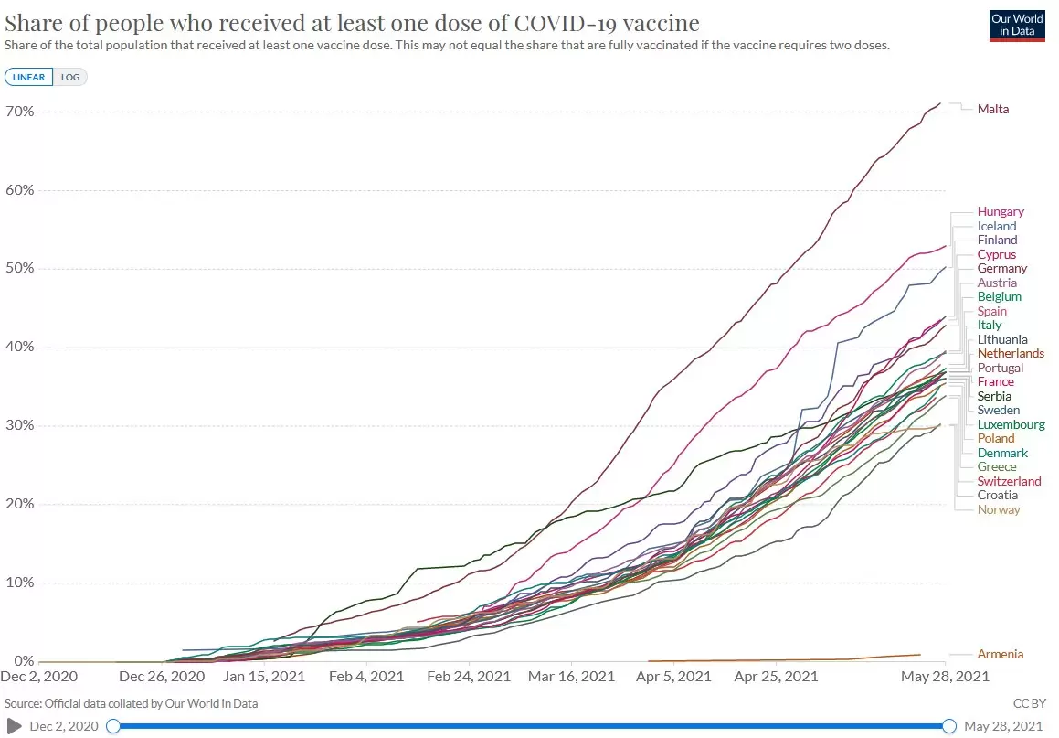 En particular, Malta y Hungría informan de una vacunación a gran escala en sus territorios. Por lo tanto, la vacunación se ha llevado a cabo entre los jóvenes durante varias semanas.