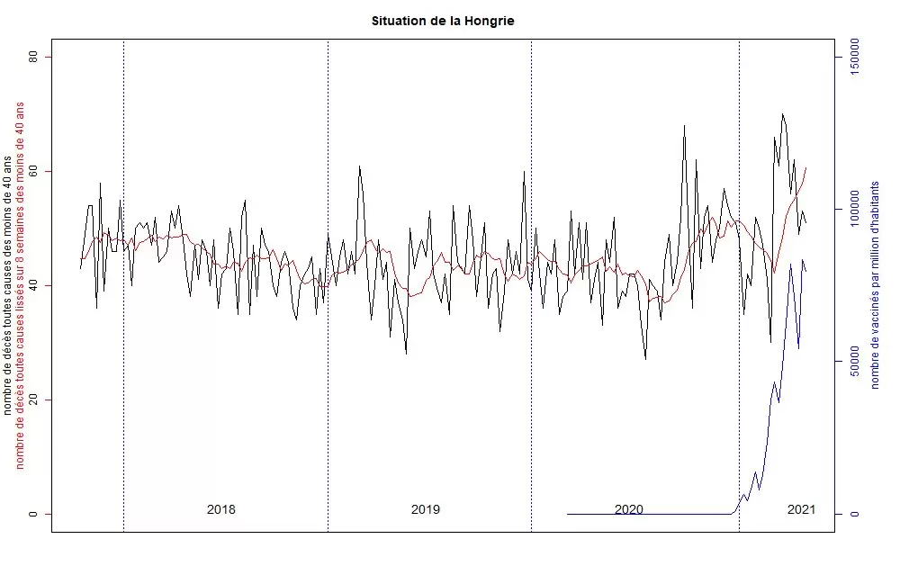 Teniendo en cuenta la evolución de la estructura de edad en Hungría y el fuerte descenso del número de personas menores de 40 años, este es también el periodo con mayor número de muertes registradas de jóvenes. Como es comúnmente aceptado que los jóvenes apenas mueren por infecciones respiratorias agudas contraídas durante el invierno, y tampoco por Covid-19, el número de posibles causas de este exceso de mortalidad es limitado. Aunque algunos argumenten que la causa es un nuevo virus, esto significaría que sólo ha aparecido desde la campaña de vacunación.